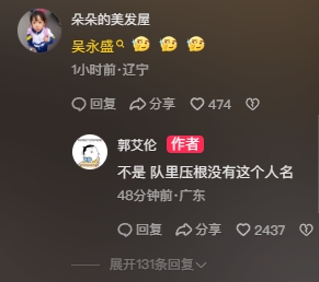 随后有网友称郭艾伦是被吴永盛打的,郭艾伦辟谣写道:“不是,队里压根没有这个人名。”