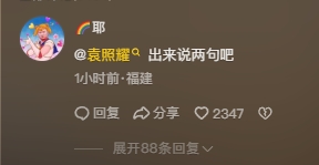 评论区另一个热评则是小将袁照耀,目前已经很多点赞,但郭艾伦没有回复。值得一提的是,袁的社媒开启了防打扰,但郭艾伦最新的抖音发布之后又开启了。