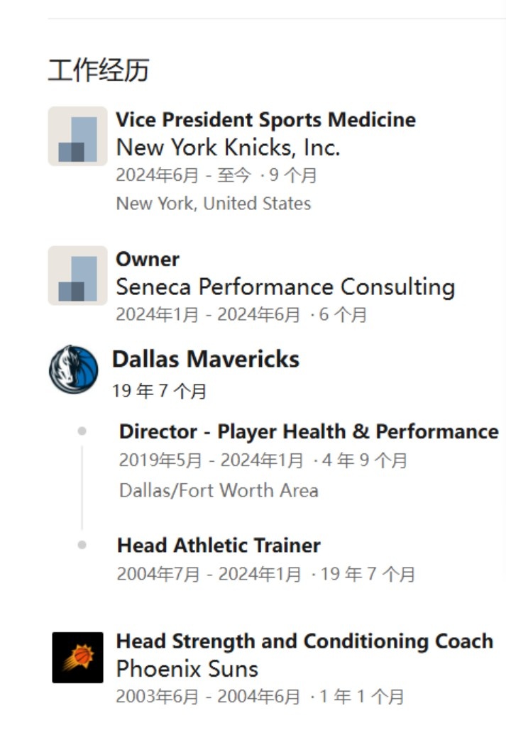 于是,在本赛季,卡尔沃、马切克都被哈里森要求离开球队;同样也被撵走的,还包括东契奇在国家队时期的前辈,独行侠的助教马尔科·米利奇,以及基德的助教科科什科夫。甚至从2004年开始就在达拉斯担任训练师,后来升职为球员健康表现总监的凯西·史密斯,也在本赛季开始前得知不再会给他提供场边座位,凯西·史密斯随后选择加入尼克斯,而他在独行侠的任期写在了他的领英页面上:19年7个月。